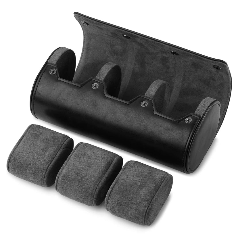 Este estuche negro para relojes, diseñado para albergar tres de sus piezas más preciadas, refleja una sofisticación atemporal. Confeccionado en piel de estilo vintage, emana un encanto clásico que nunca pasa de moda.